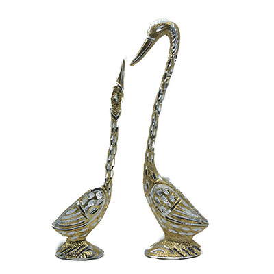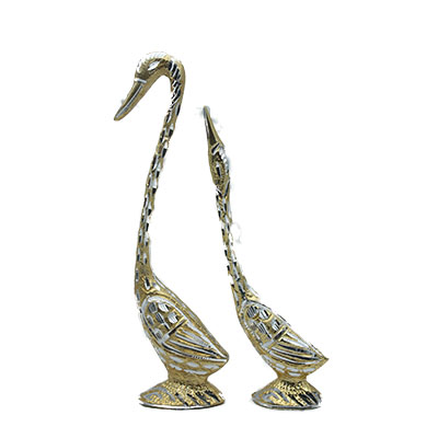 Introducing our elegant metal kissing duck pair, designed for lasting beauty with a sturdy self-standing base. These stunning Gold sculptures symbolize eternal love and grace, featuring intertwined necks that form a heart shape, perfectly capturing the essence of romance.