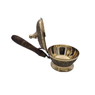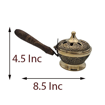 Incense Burner with Handle, for use with shisha charcoal & herbal blends. Perfect for cleansing the house. Brass metal can get hot once the charcoal is burning so please take care when placing it down.